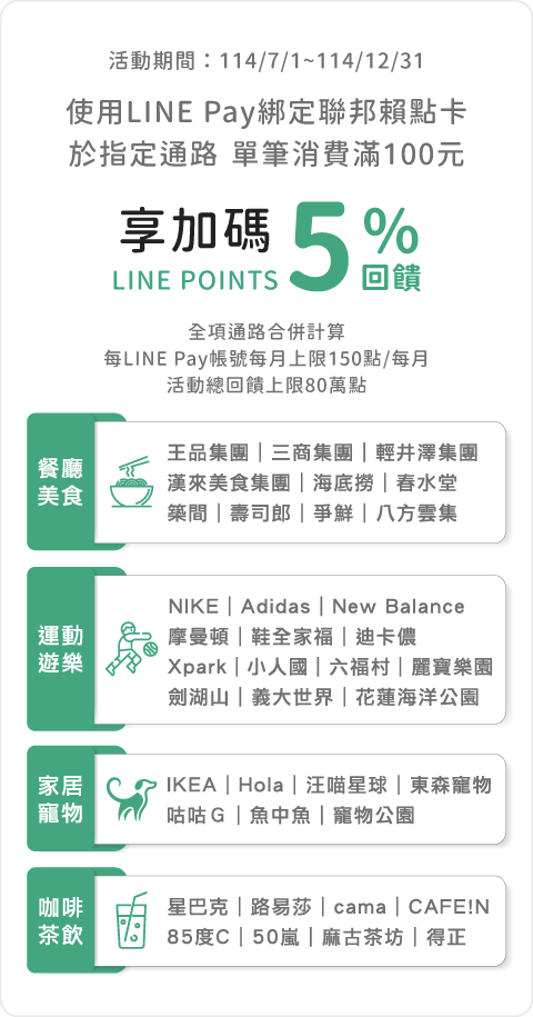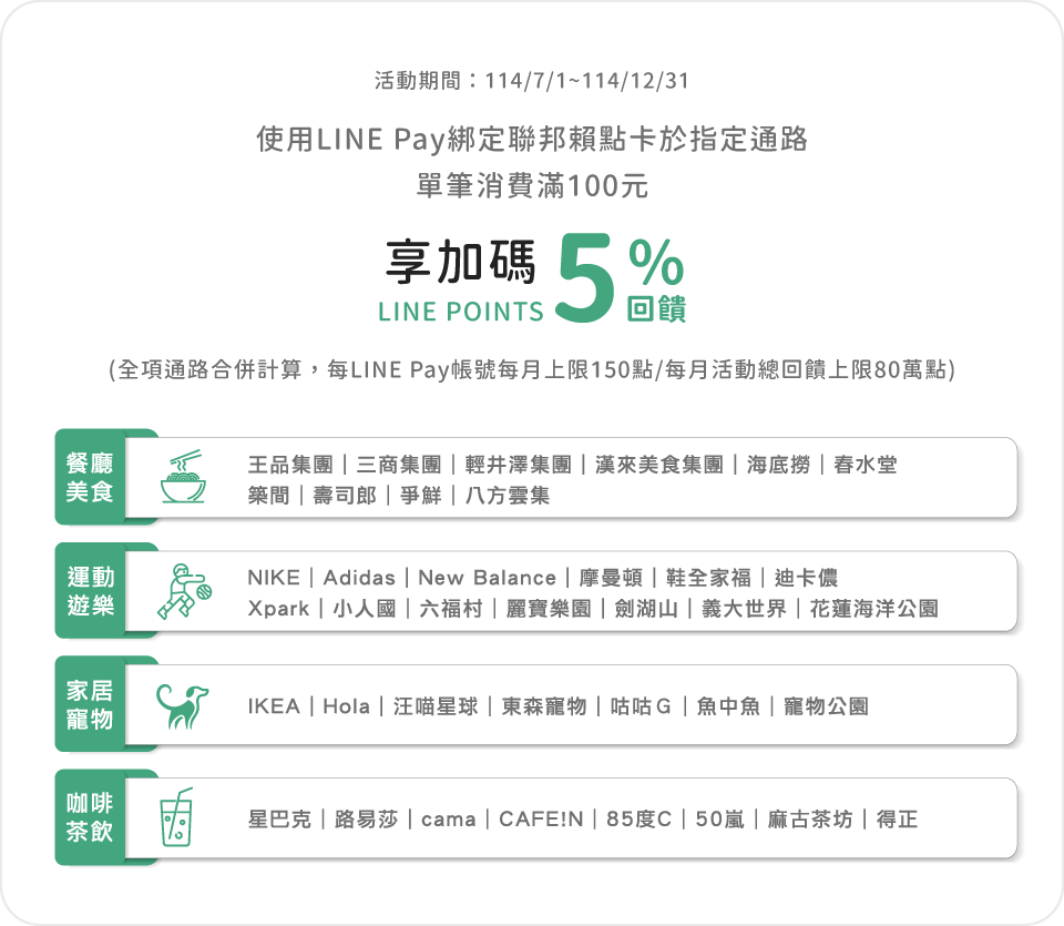 需申辦電子化帳單並成功綁定於LINE Pay即享LINE POINTS回饋