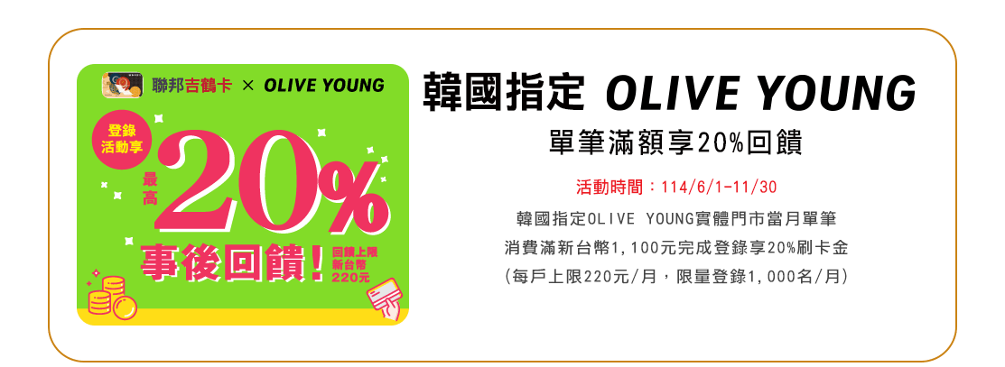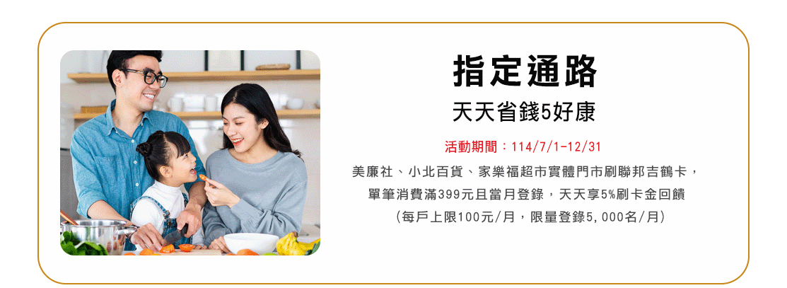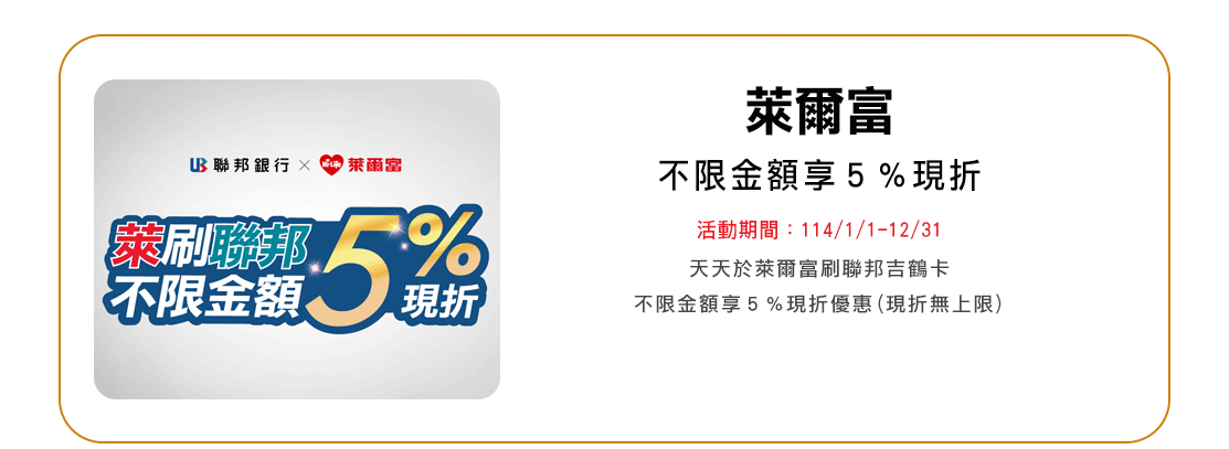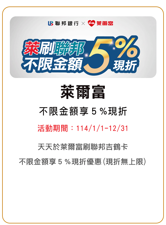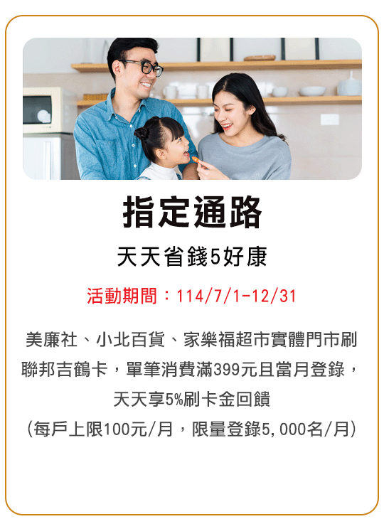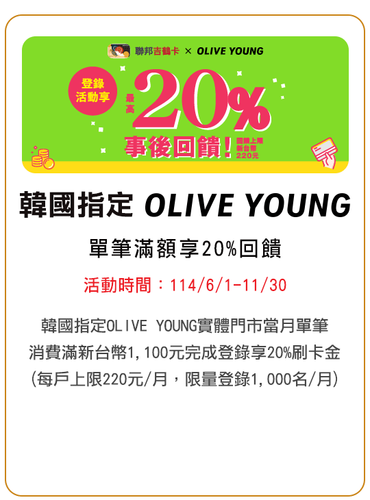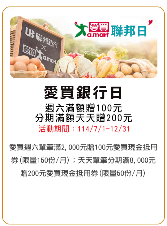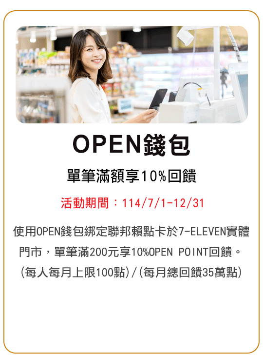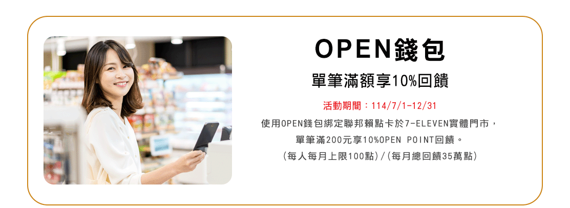 本優惠活動期間114/2/10-114/12/31,僅限當日單筆消費滿NT$700現折NT$70,恕不累送,每卡每次消費最高折NT$70,同行者不得分開結帳。
