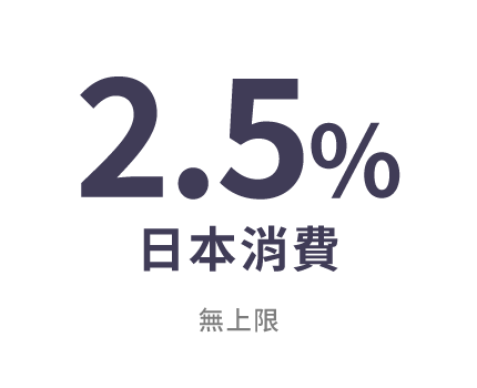 | 2. | 日幣一般消費2.5%回饋:凡信用卡帳單「消費地金額及幣別」以日幣請款之一般消費即享日幣消費2.5%回饋,回饋無上限。 |