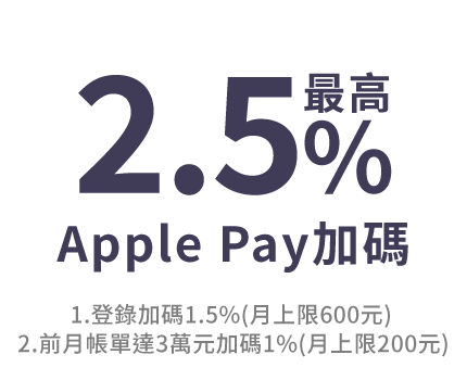 | 8. | 本活動僅適用實體卡及感應式交易,第三方支付(如:LINE Pay 、街口支付、Pi 拍錢包…等)均不適用。 |