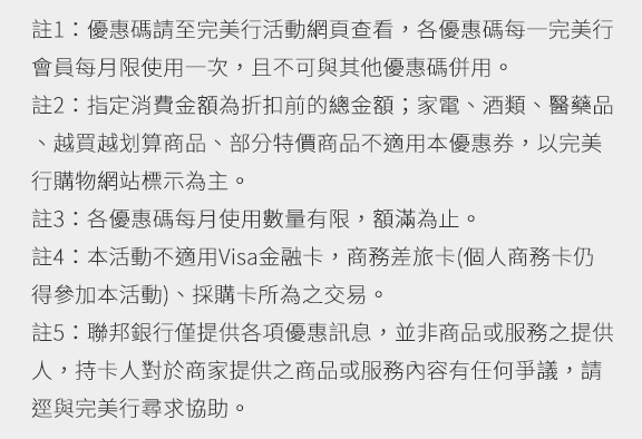 您即將離開聯邦銀行網頁,前往「完美行購物WAmazing」網站。