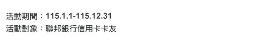 | 10 | 聯邦銀行商務卡、採購卡與Visa金融卡恕不適用本活動優惠。 |
