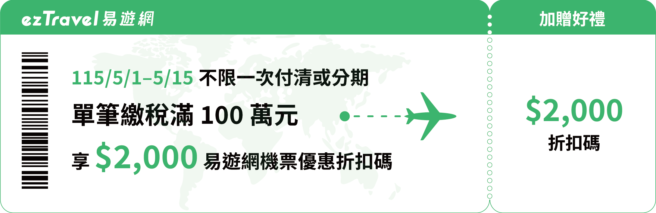 | * | 115/12/31前於易遊網刷聯邦卡購買機票單筆滿 1 萬元即可折抵。 |